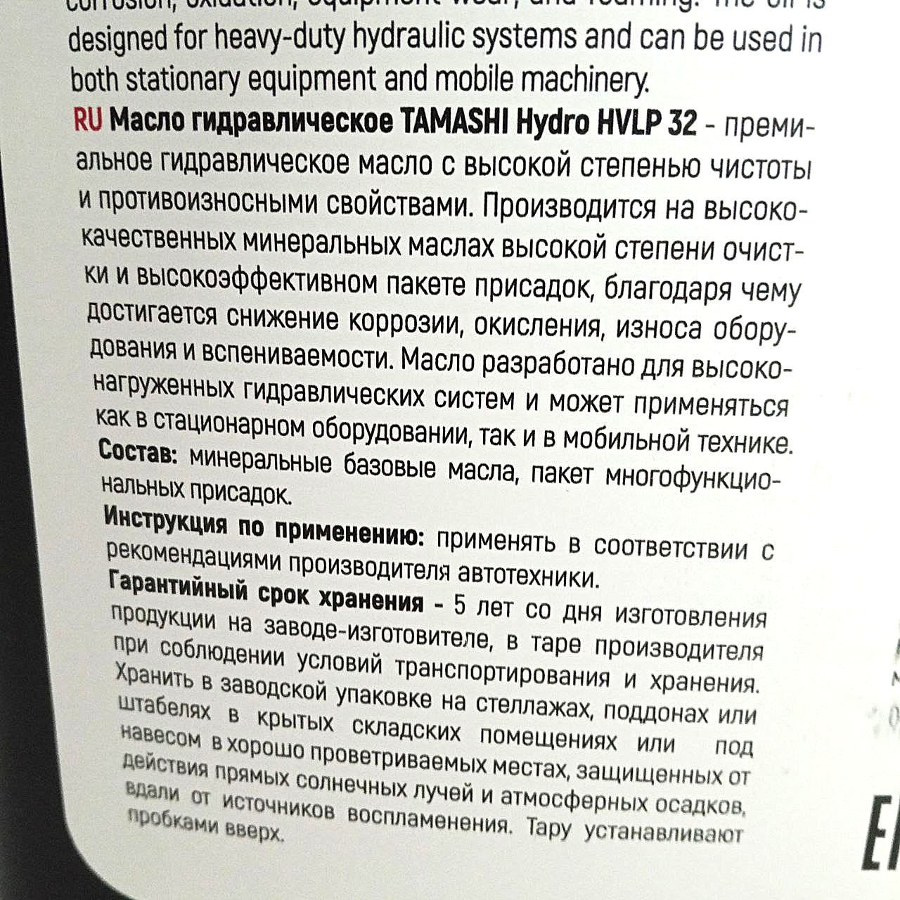 Гидравлическое масло HVLP 32 (20л) | HVLP32T20 | Tamashi